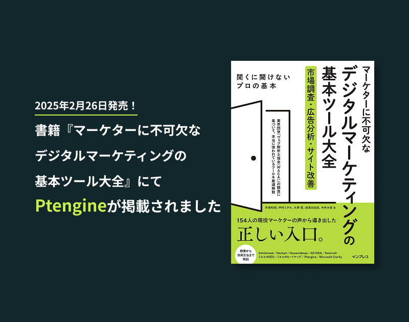 2026年2月26日、インプレス社より刊行された書籍「マーケターに不可欠なデジタルマーケティングの基本ツール大全」にて、当社のPtengineが「ヒートマップツール」部門の代表的なソリューションとしてご紹介いただいています。